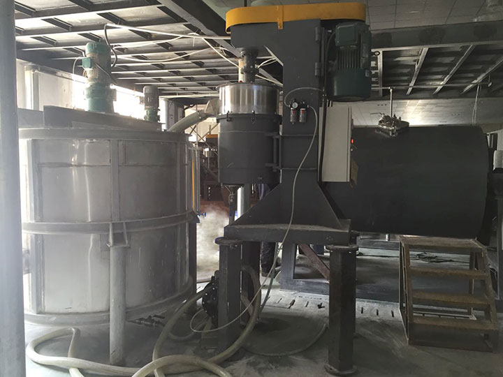 循環(huán)式攪拌球磨機(jī)是一種將攪拌球磨機(jī)和大容量的預(yù)混合缸相結(jié)合的機(jī)型,利用泵高速循環(huán)達(dá)到研磨效果和窄的粒徑分布。快速循環(huán)的物料通過攪動(dòng)激烈的研磨介質(zhì)層,這種現(xiàn)象有利于得到窄的粒徑分布,允許小的微粒迅速通過,而相對(duì)粗的微粒則要滯留長(zhǎng)的時(shí)間,對(duì)粗粒有優(yōu)先破碎效果。循環(huán)式攪拌磨通常用于結(jié)束物料尺寸達(dá)到微米級(jí),質(zhì)量要求高,難于研磨和分散的物料研磨。